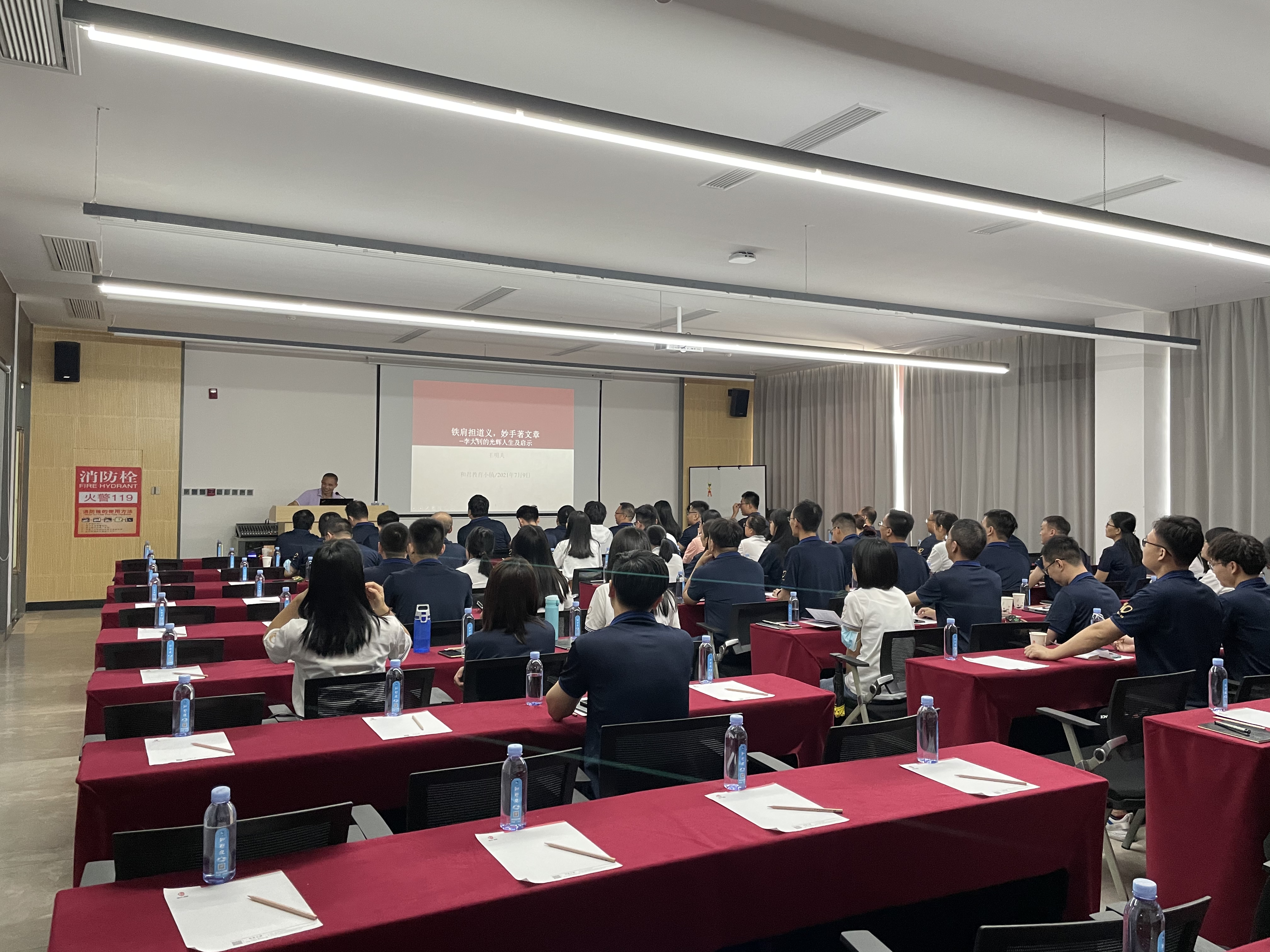 參觀結(jié)束后,王明夫老師為大家講解《鐵肩擔道義,妙手著文章——李大釗的光輝人生及啟示》。課堂上,王老師帶領大家回溯歷史軌跡,進一步深刻認識了李大釗這位偉大的革命先烈。通過李大釗的光輝人生,所有人跟著思考這些問題:人生何求?我們又為社會、國家做了哪些事情呢?此外,李凱城老師也為大家開展了《從百年黨史中汲取歷史智慧》的教學課程。李老師立足管理學角度,通過講解百年黨史及許多革命過程中的小故事,借此延伸到現(xiàn)代的企業(yè)管理。大家也從中有了新的啟發(fā),深刻感受到肩負的責任和使命。從黨的百年偉大奮斗歷程中,我們汲取繼續(xù)前進的智慧與力量。