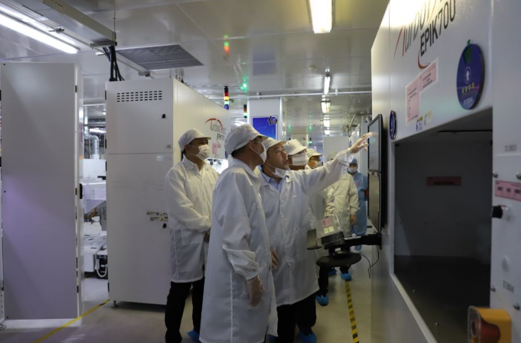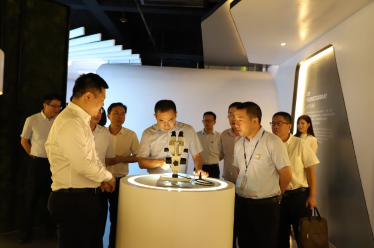 考察組一行參觀了公司展廳,了解乾照光電的發(fā)展歷程,體驗(yàn)公司產(chǎn)品在照明、顯示、背光、航天等終端應(yīng)用領(lǐng)域的成果,深入到生產(chǎn)車間了解研發(fā)和生產(chǎn)過程。各位領(lǐng)導(dǎo)對我司產(chǎn)品的高技術(shù)含量、生產(chǎn)制造的工藝水平以及自動化普及程度均表示贊同和認(rèn)可。