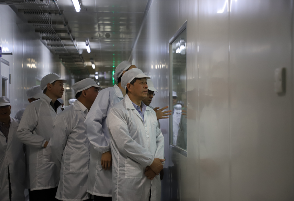 考察團(tuán)一行聽(tīng)取了乾照光電發(fā)展現(xiàn)狀、人才團(tuán)隊(duì)培養(yǎng)和未來(lái)規(guī)劃的介紹,并參觀了公司展廳和生產(chǎn)車(chē)間。期間,考察團(tuán)詳細(xì)了解了LED外延片、芯片等產(chǎn)品的技術(shù)性能、生產(chǎn)流程和相關(guān)的生產(chǎn)工藝,并與管理和研發(fā)團(tuán)隊(duì)圍繞半導(dǎo)體產(chǎn)業(yè)發(fā)展進(jìn)行交流討論。