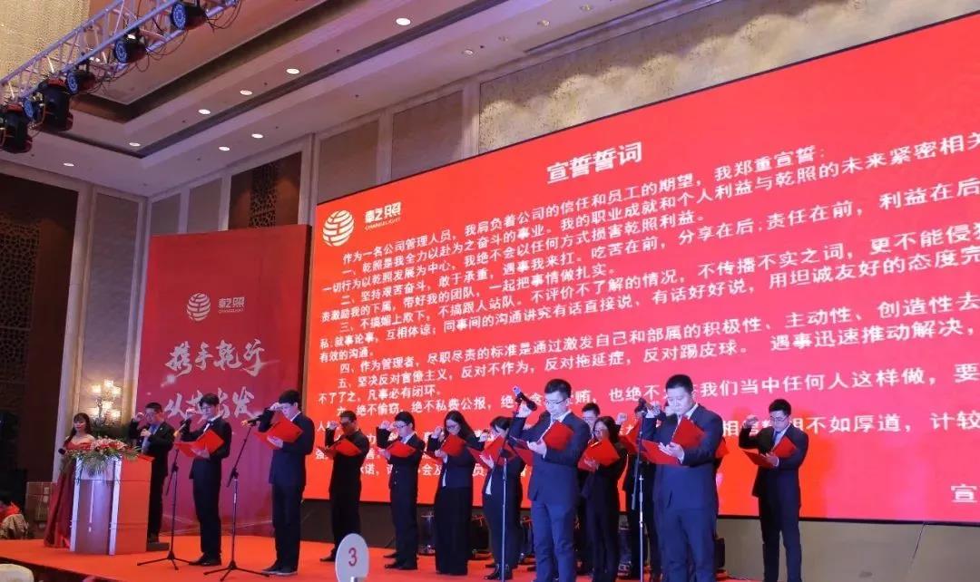 表彰后,舉行了管理層人員誓師大會。揚州乾照光電總經(jīng)理帶領(lǐng)公司經(jīng)理層以上管理人員20余人,面對全體員工莊嚴(yán)宣誓,將不辜負(fù)公司的信任和員工的期望,把乾照作為全力以赴奮斗的事業(yè),一切行為以乾照發(fā)展為中心,艱苦奮斗,勇于擔(dān)當(dāng),做到待人真誠、處事謙恭、簡單正直、質(zhì)樸堅韌,激發(fā)自己和部屬的積極性、主動性,創(chuàng)造性地去獲取勝利。