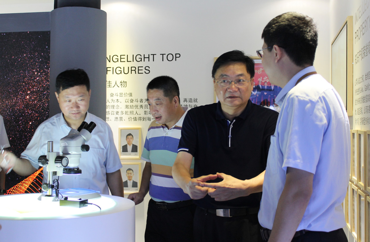 隨后,巡視組一行參觀了公司展廳。馬祥柱為大家講述了揚州乾照光電創(chuàng)業(yè)十年的歷程、成績以及榮譽,并介紹了公司各類產(chǎn)品的型號、樣式以及應用領域。巡視組成員們通過顯微鏡觀察了公司芯片成品芯粒,對一片四寸圓片能切出幾十萬顆芯粒的生產(chǎn)工藝贊嘆不已。