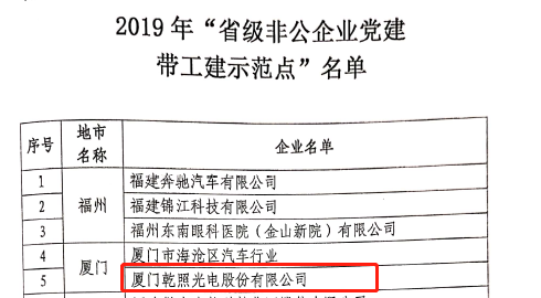 榮獲2019年“福建省非公企業(yè)黨建帶工建示范點(diǎn)”