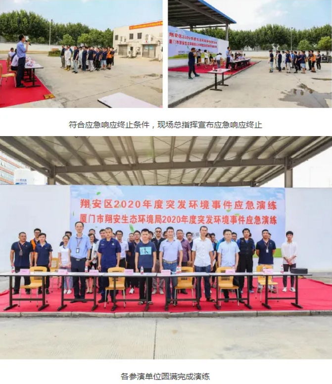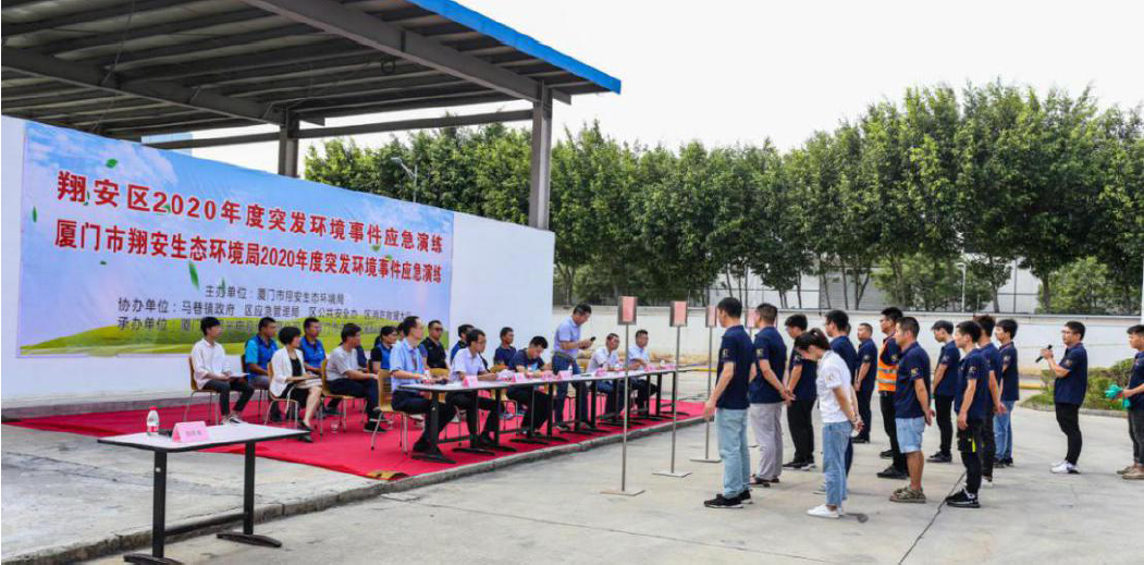 2020年9月4日下午4點,由廈門市翔安生態(tài)環(huán)境局主辦,翔安區(qū)應(yīng)急管理局、翔安區(qū)公共安全辦區(qū)、翔安消防救援大隊、馬巷鎮(zhèn)政府協(xié)辦,廈門乾照光電股份有限公司、廈門市正巽環(huán)??萍加邢薰境修k的2020年度翔安區(qū)突發(fā)環(huán)境事件應(yīng)急演練在廈門乾照光電股份有限公司舉行。