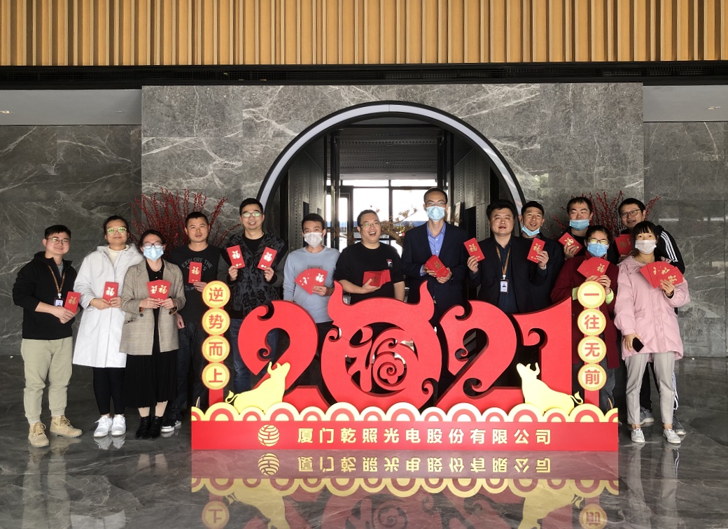 為增添節(jié)日氣氛,使員工感受到溫暖與關(guān)懷,春節(jié)前后,廈門乾照陸續(xù)準(zhǔn)備了新春大禮包、線上抽獎(jiǎng)、除夕年夜飯、開門紅包、許愿活動(dòng)及春節(jié)視頻征集等一系列活動(dòng)。