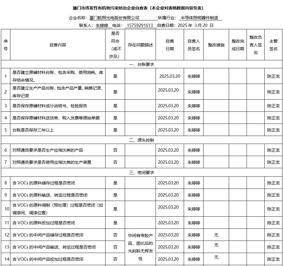 揮發(fā)性有機(jī)物污染防治企業(yè)自查表