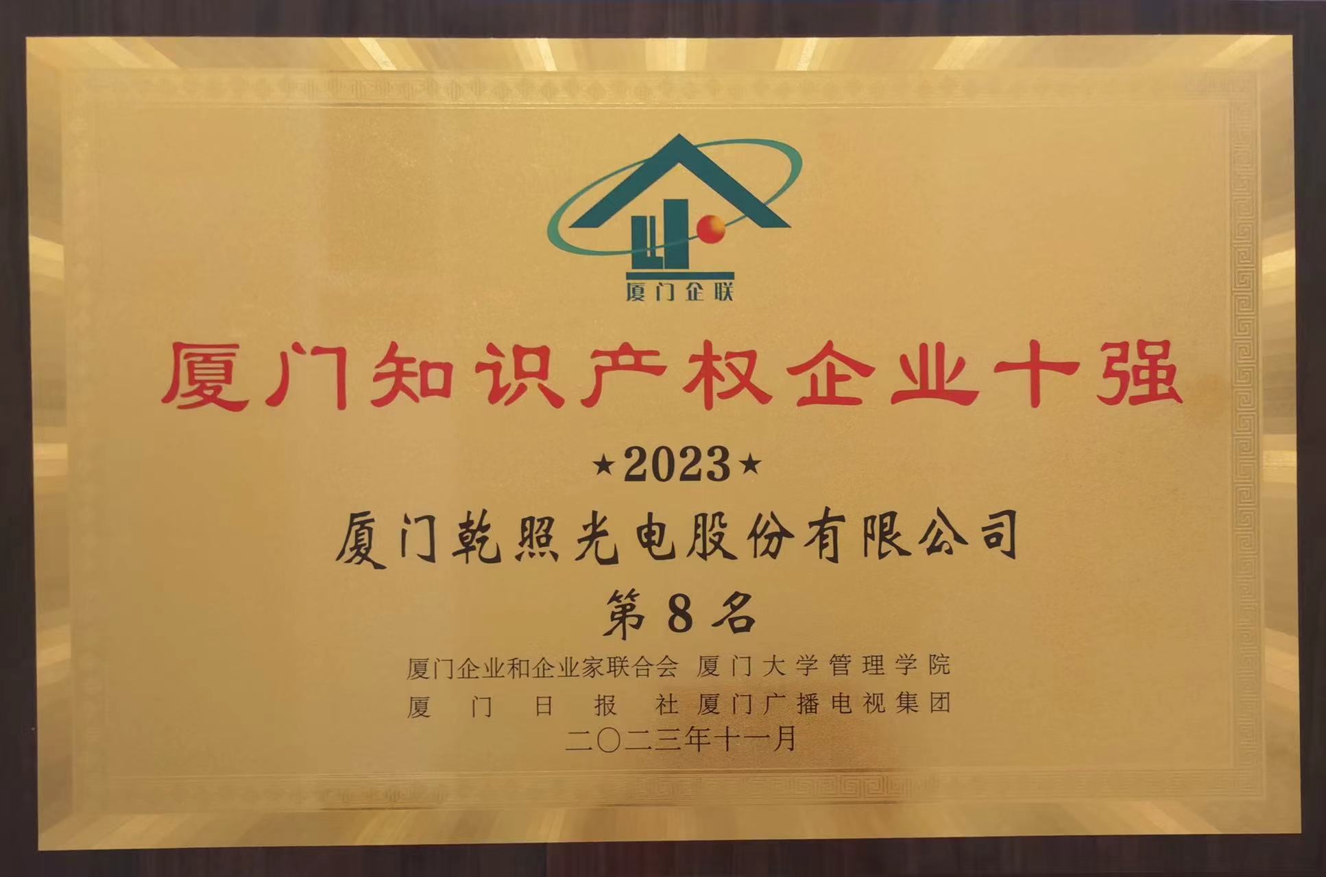 乾照光電榮獲“廈門知識產(chǎn)權(quán)企業(yè)十強(qiáng)”稱號